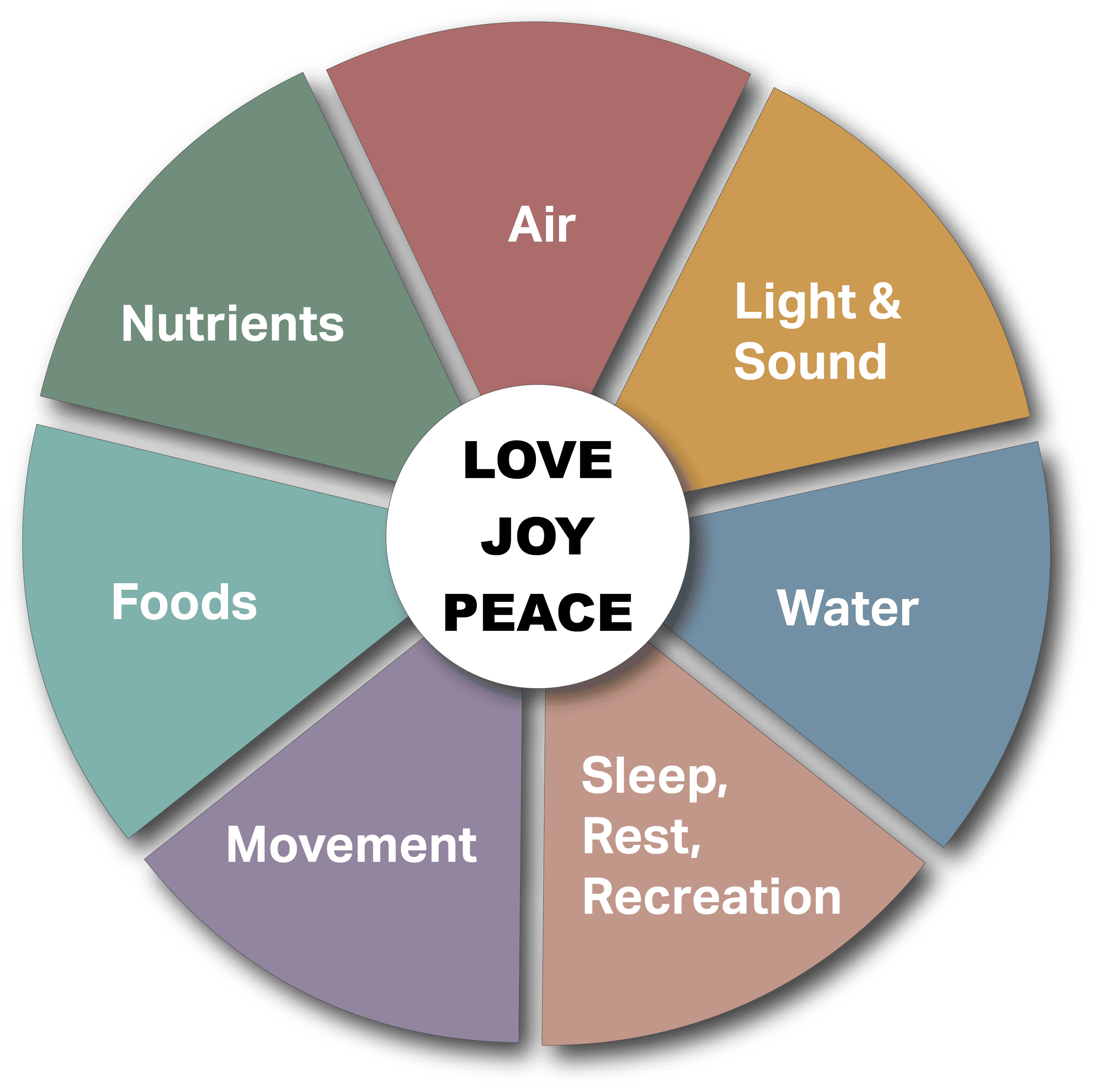 The Healthy 100 protocol is designed as a framework on which to build a long and healthy life, by addressing 7 core principles, with a central hub:'